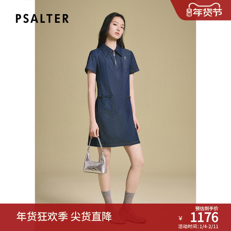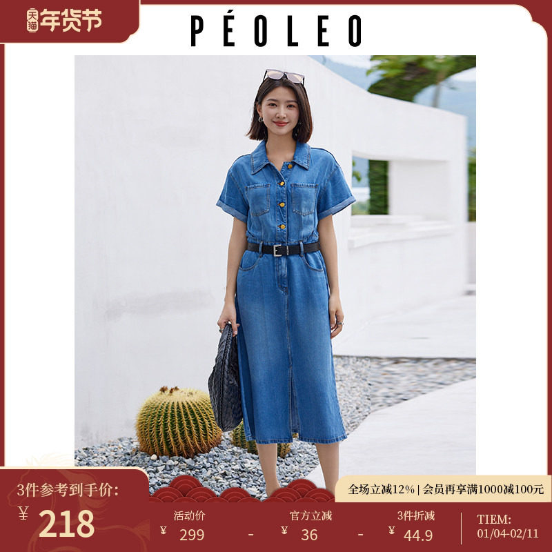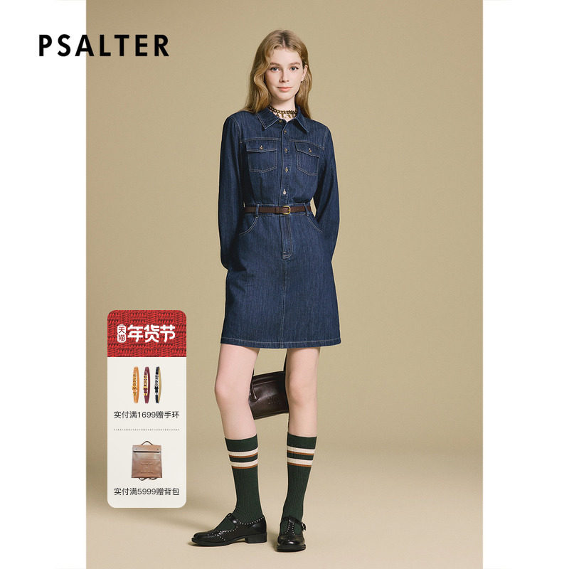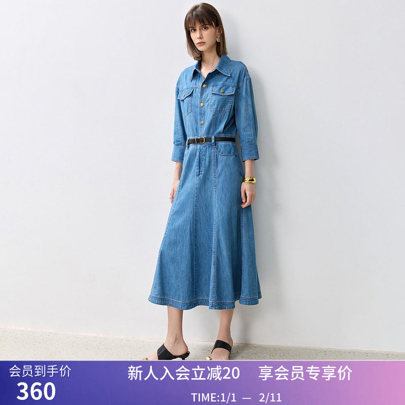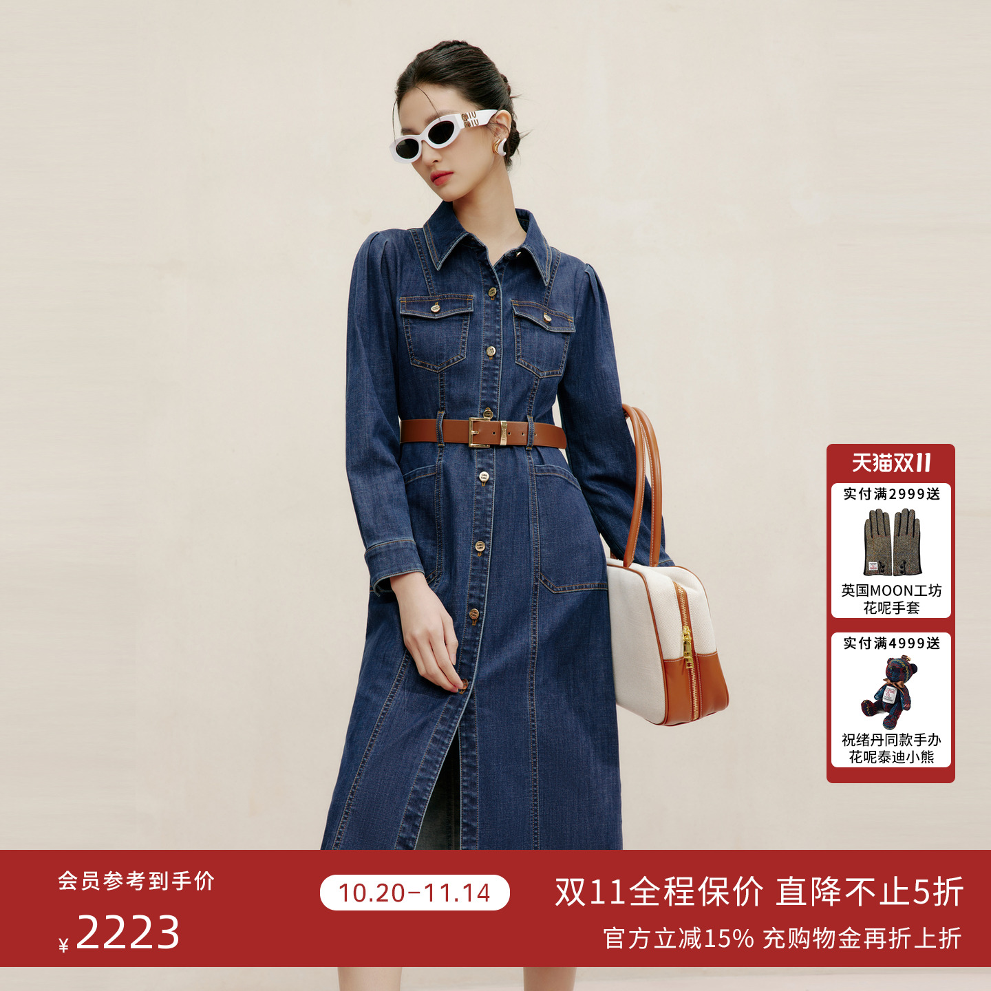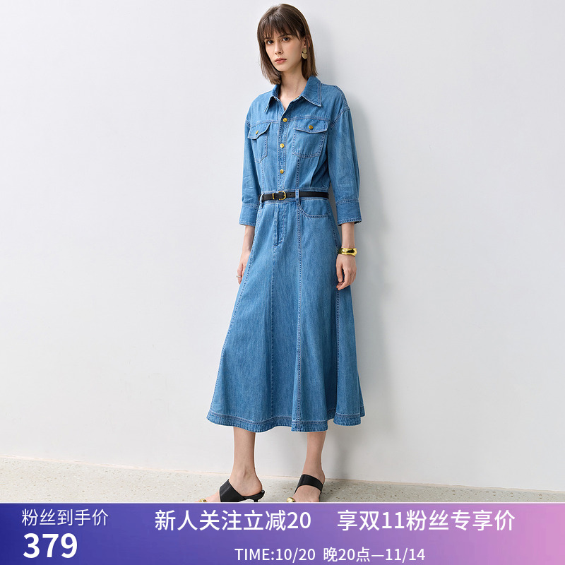 【商场同款】LILY秋新款经典含莱赛尔复古时髦收腰牛仔连衣裙
