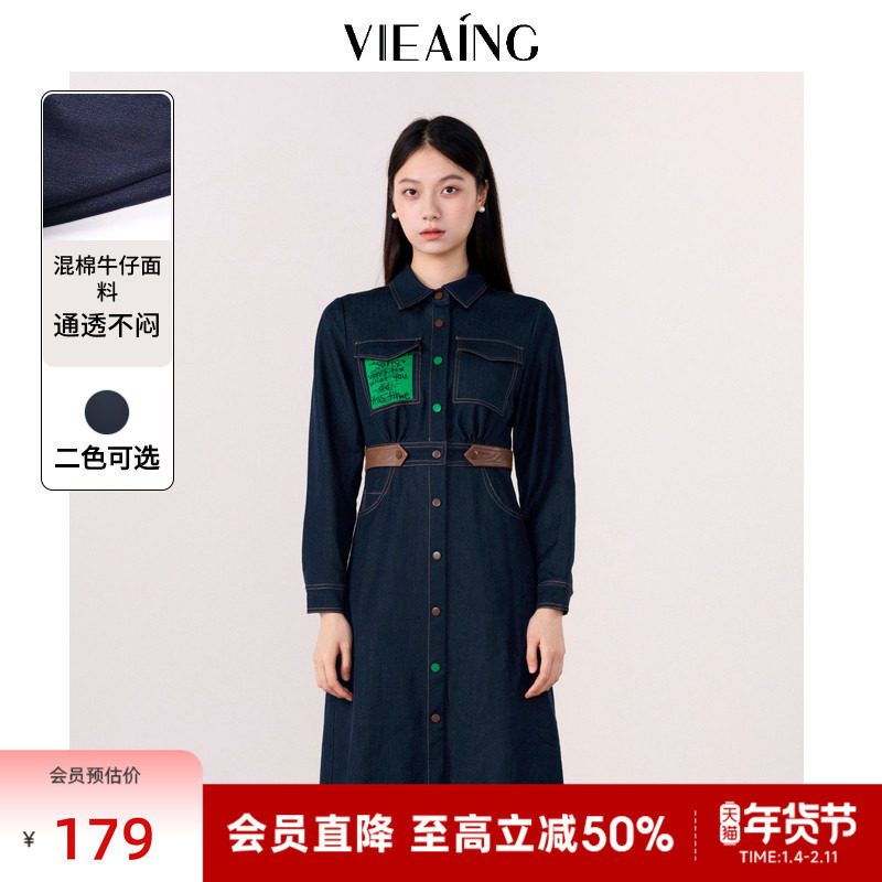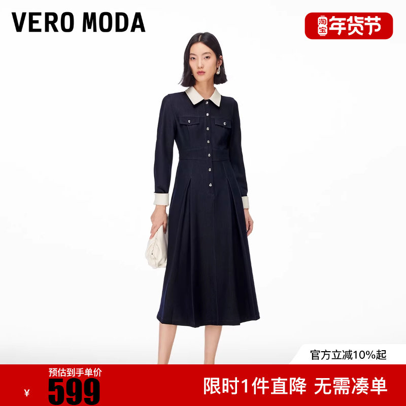 绫致Vero Moda连衣裙女26春季新款撞色口袋大裙摆收腰牛仔连衣裙