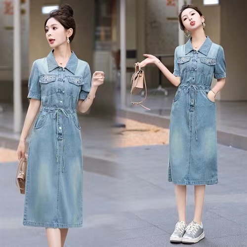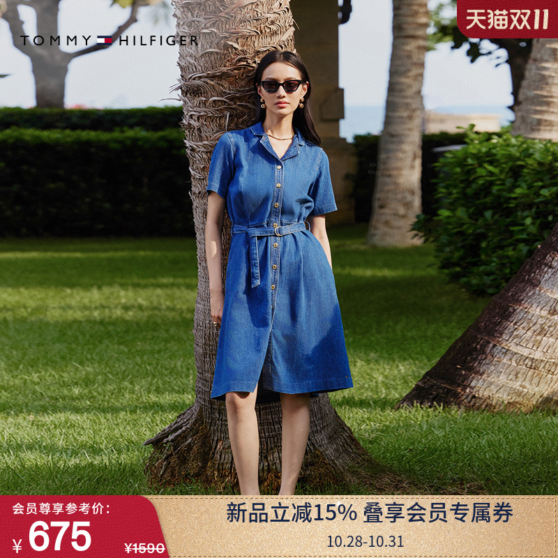 【显瘦衬衫裙】Tommy25新款夏季女纯棉古巴领收腰牛仔连衣裙