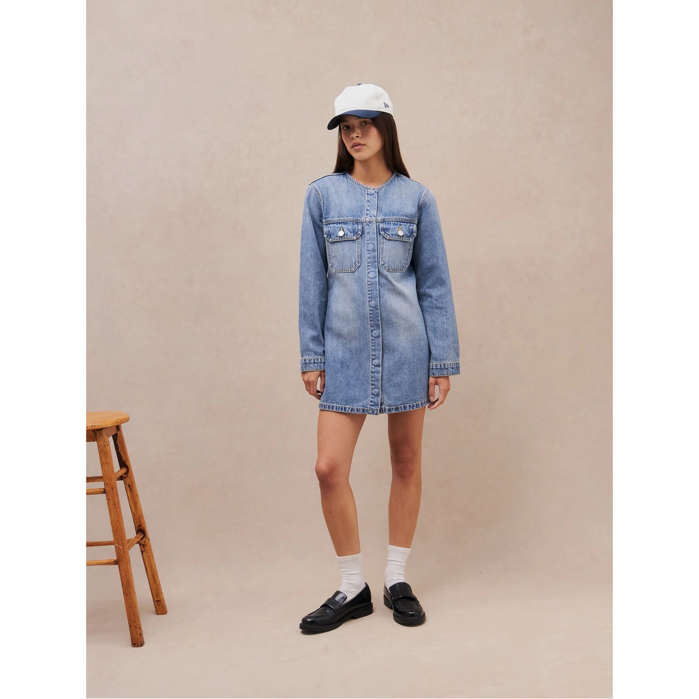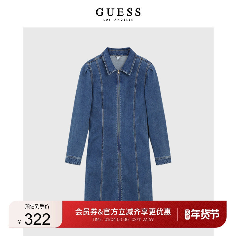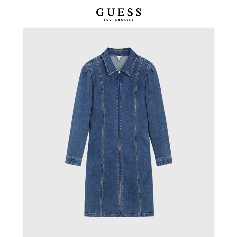 GUESS女士秋款拉链翻领修身收腰牛仔连衣裙-YL3D6788
