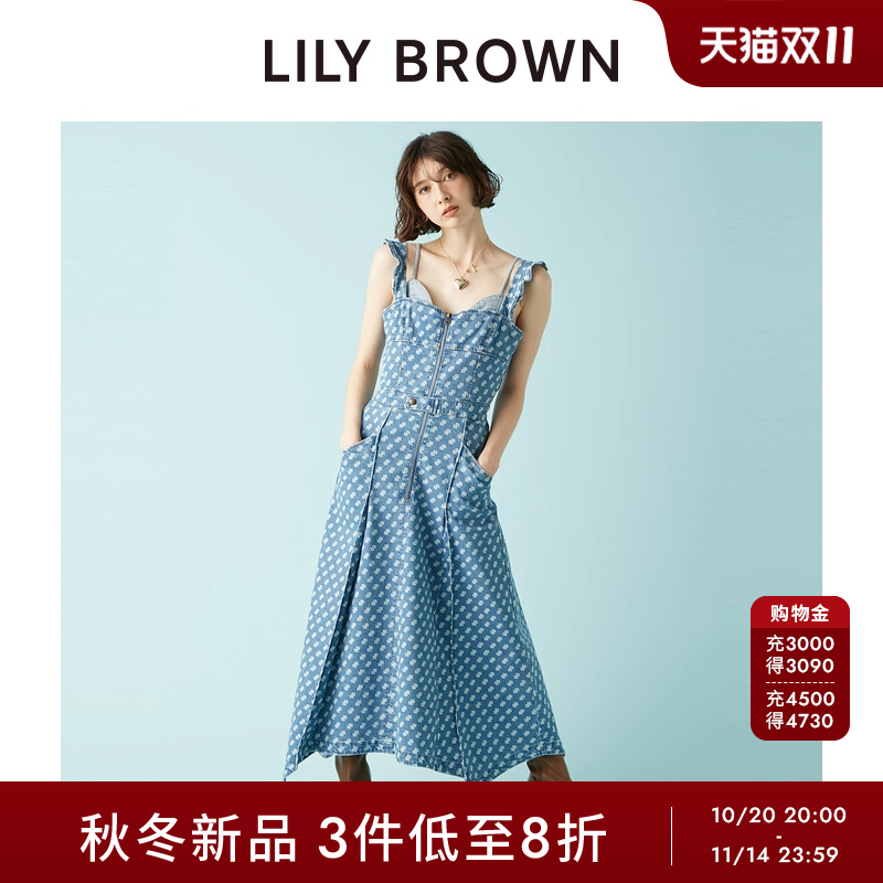 LILY BROWN2025秋冬新品双肩带半拉链收腰牛仔连衣裙LWFO254202