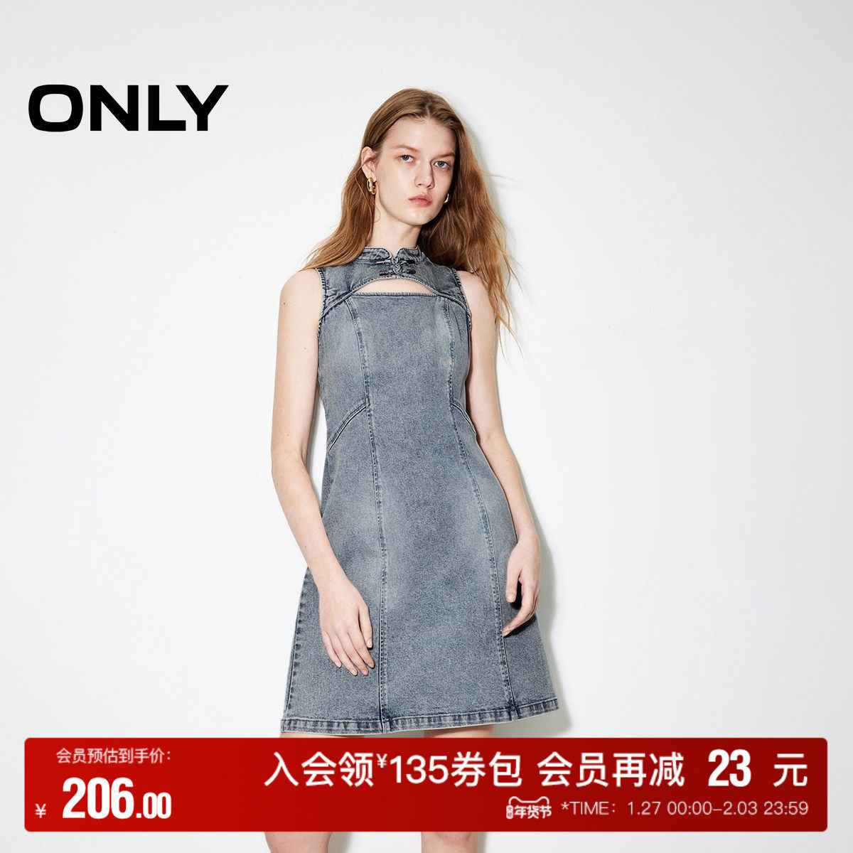 【新中式】ONLY奥莱秋冬气质国风盘扣立领短裙收腰牛仔连衣裙女