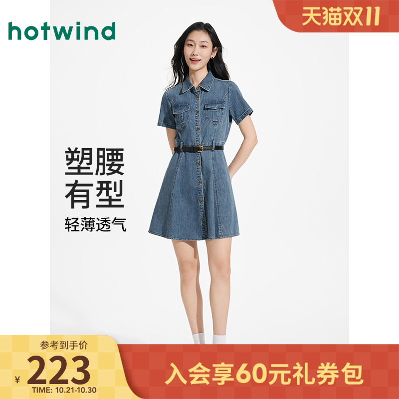 热风2025年夏季新款全棉轻薄收腰牛仔连衣裙棉柔亲肤塑腰有型