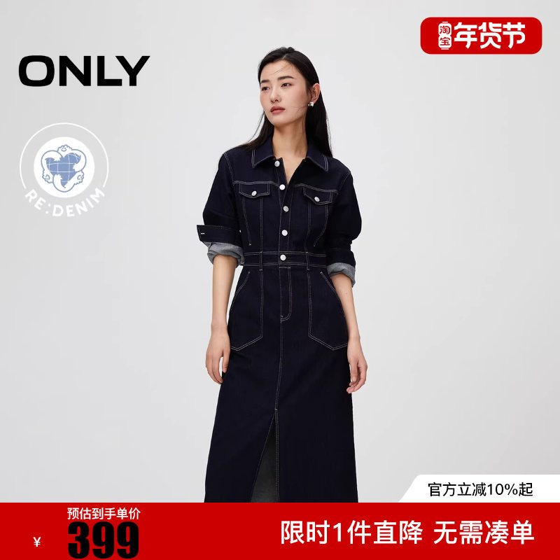 ONLY2025冬新款气质原色牛仔A字收腰牛仔连衣裙女125342019