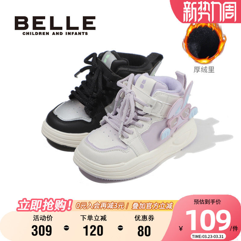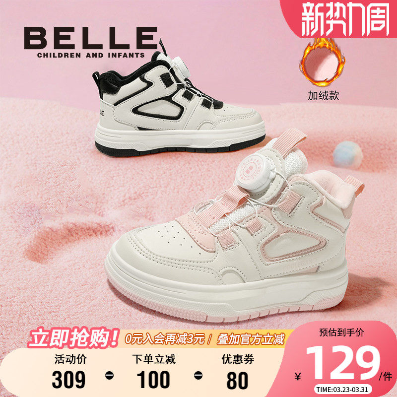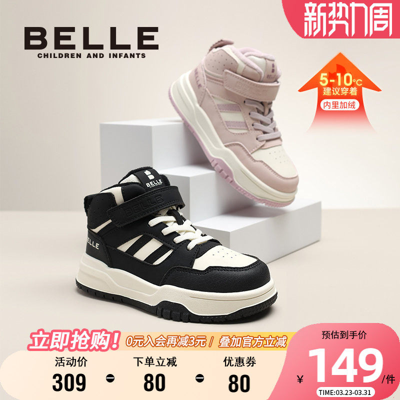 百丽童鞋男女童高帮板鞋加绒保暖休闲鞋冬季新款儿童运动鞋二棉鞋