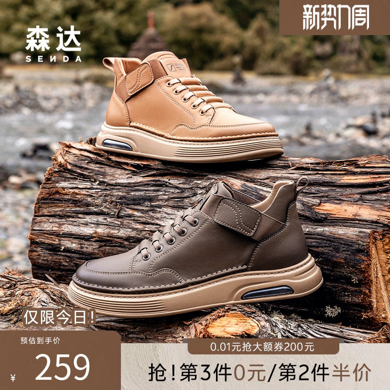 森达男鞋工装鞋商场同款美式复古休闲板鞋秋冬加绒保暖鞋V3047DD4