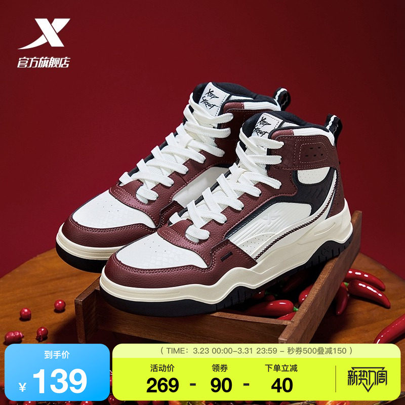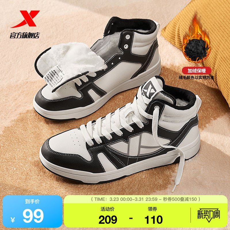 特步高帮板鞋男鞋2026春季新款增高休闲鞋保暖加绒棉鞋运动鞋子