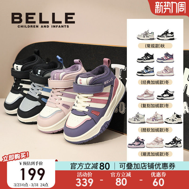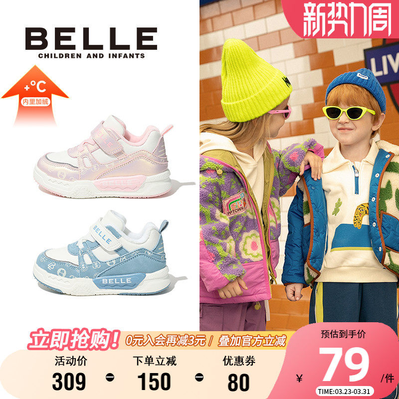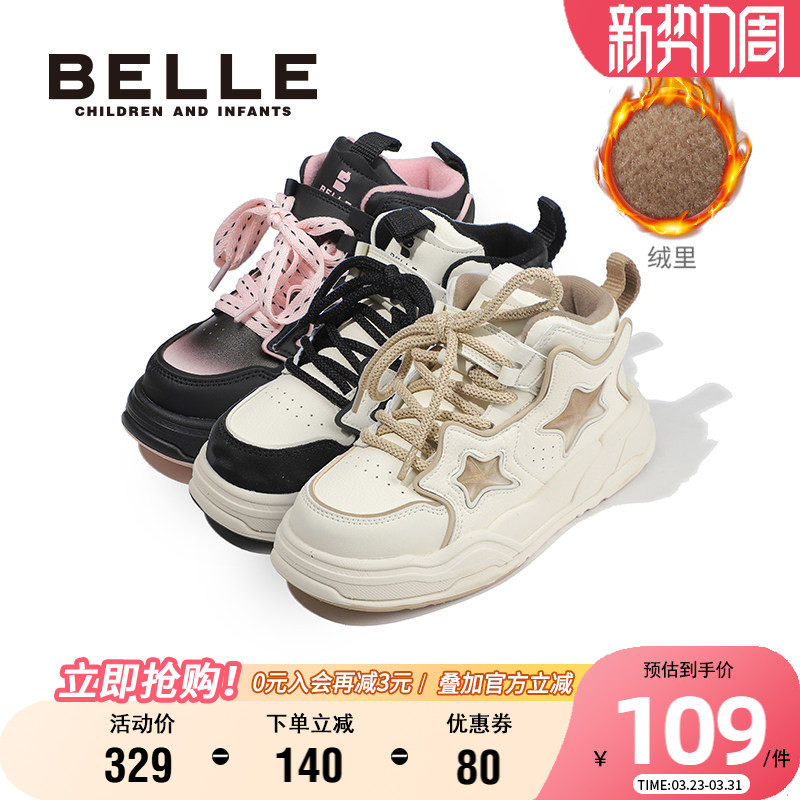 【清仓】百丽童鞋女童板鞋加绒保暖运动鞋儿童棉鞋男童春季休闲鞋
