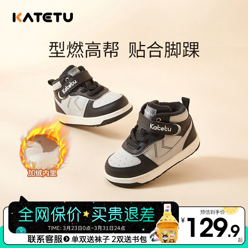 卡特兔童鞋2025新款冬季男童高帮运动鞋女童保暖板鞋儿童加绒棉鞋
