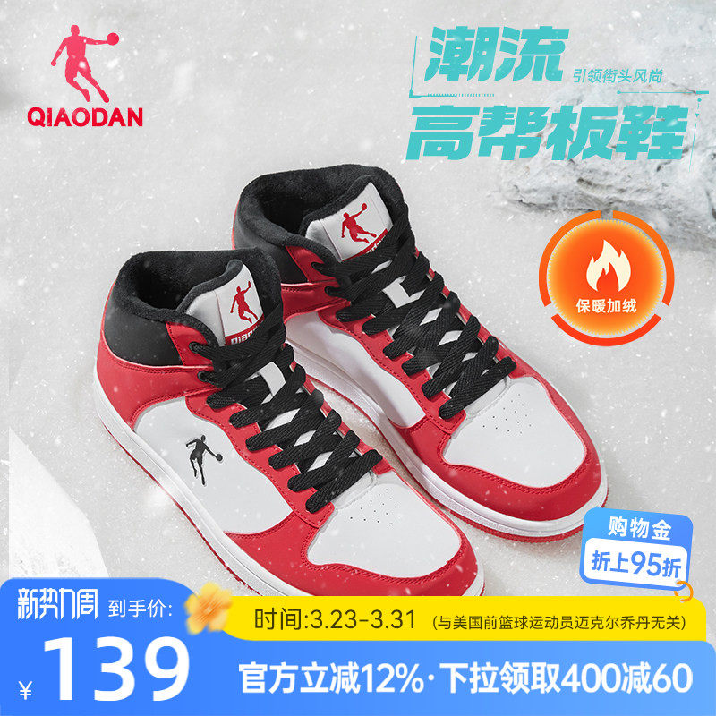 乔丹红色百搭加绒棉鞋高帮保暖板鞋男2026春季新款革面防水运动鞋