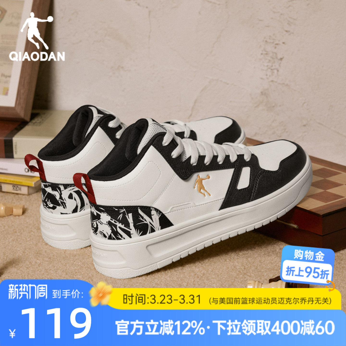乔丹黑白薄底学生高帮加绒板鞋冬季新款棉鞋运动鞋革面保暖休闲男