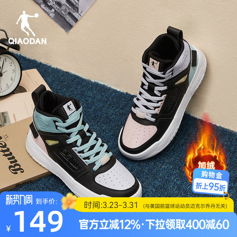 特步板鞋男鞋春季新款百搭休闲鞋保暖高帮板鞋情侣运动鞋加绒棉鞋