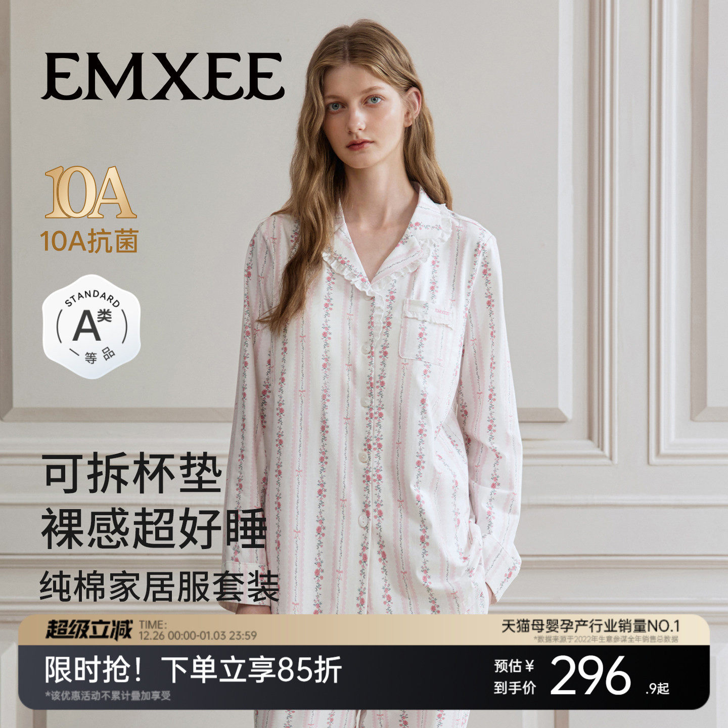 嫚熙秋冬纯棉女士睡衣女款可拆卸胸垫柔软长袖家居服套装2025新款