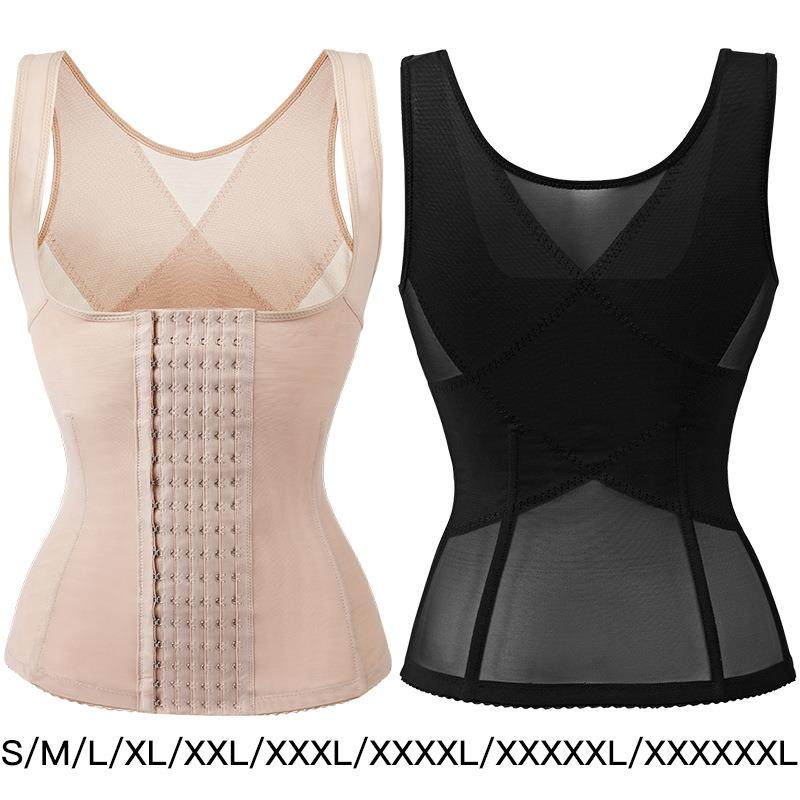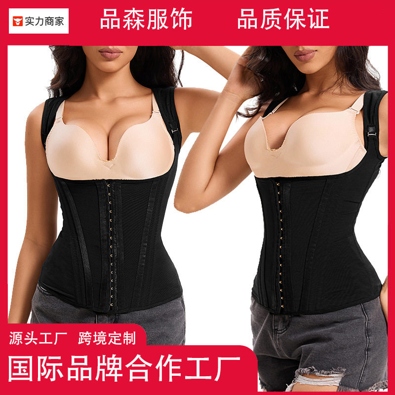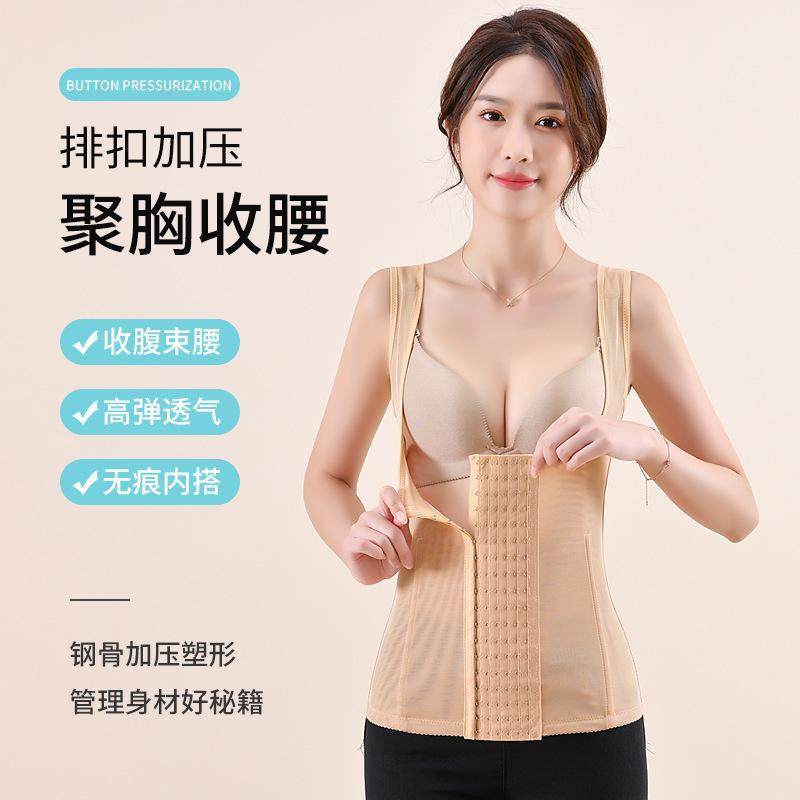 加强版薄收腹塑身上衣可调节六排扣产后修复塑形束腹背心挺背托胸