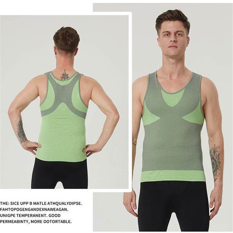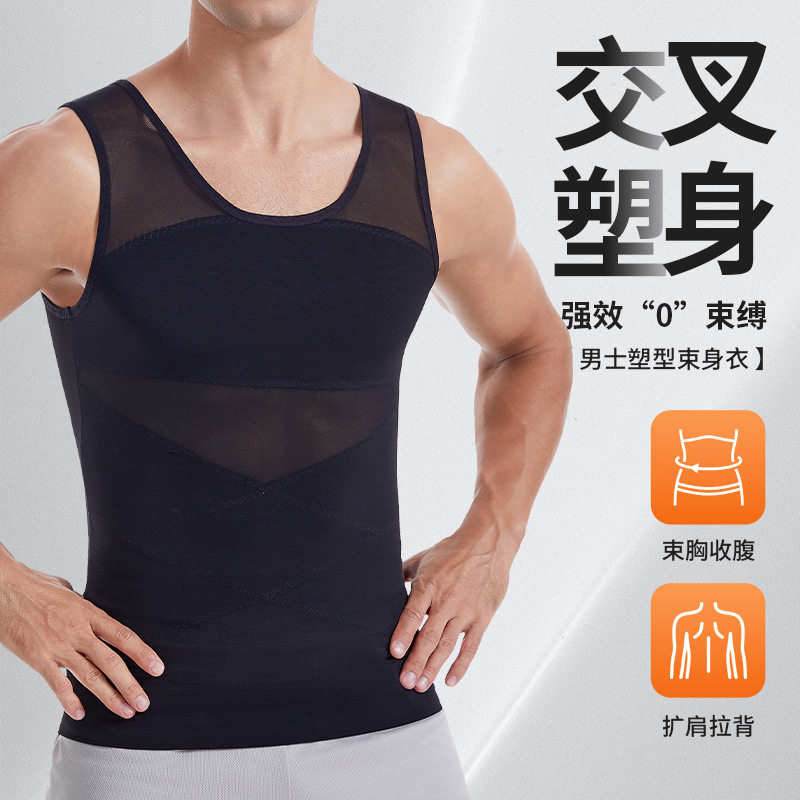 亚马逊爆款男士塑身上衣定型挺背束腹紧身背心透气网纱收腹塑形衣