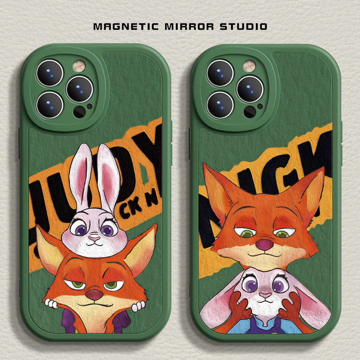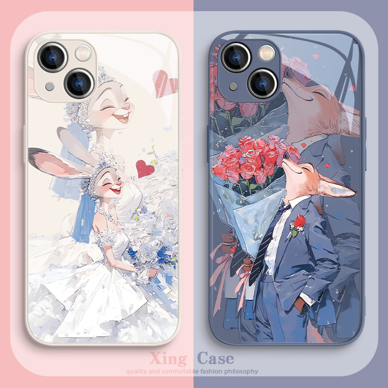 适用苹果14手机壳疯狂动物城iPhone15promax新款13结婚情侣12尼克朱迪11卡通可爱8plus7狐狸x玻璃xs兔子xr套6