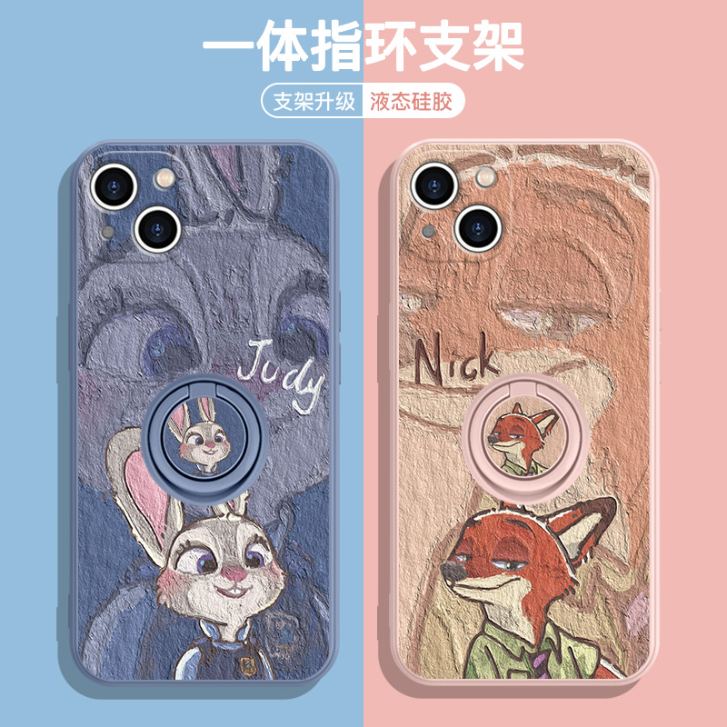 适用苹果16/15情侣手机壳iPhone13promax兔子12mini疯狂动物城14plus朱迪xr油画xs新款8plus7指环11支架6硅胶