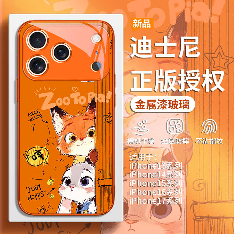 适用苹果17PROMAX手机壳朱迪尼克iPhone16PRO情侣款14PLUS玻璃13疯狂动物城12MINI卡通11新款Xs橙色8/7/6/15
