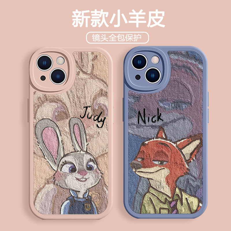 适用苹果14/16手机壳iPhone13pro疯狂动物城12mini新款8plus/7朱迪11pro兔子xsmax情侣xr油画风x卡通6s小羊皮