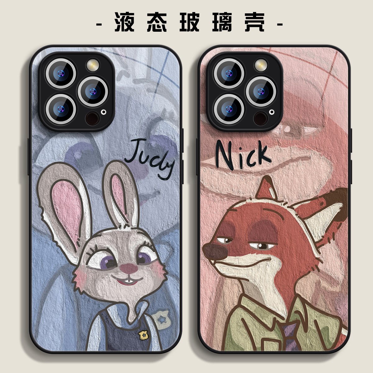适用于苹果17系列/15手机壳疯狂动物城2朱迪尼克iphone16promax可爱卡通14plus情侣13/12/11玻璃xr硬78plus/6
