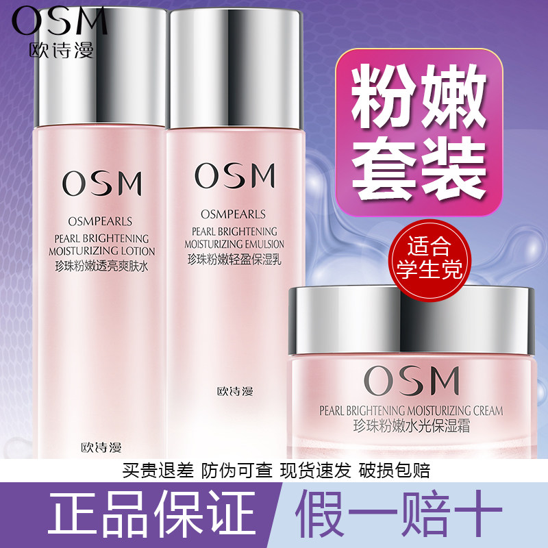 欧诗漫珍珠粉嫩水光水乳套装保湿霜透亮爽肤水轻盈保湿乳净澈洁面
