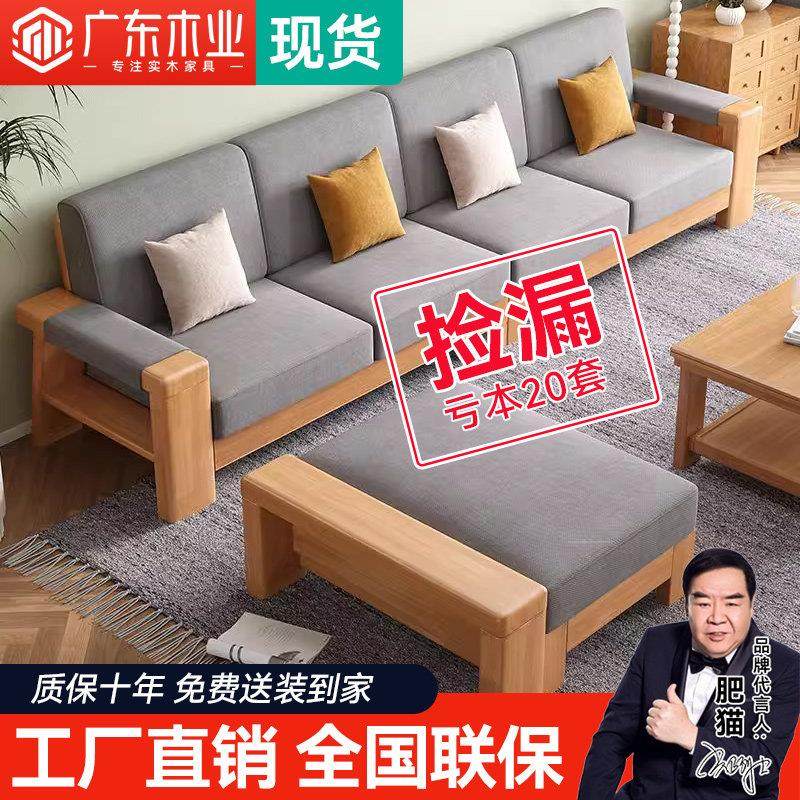 实木沙发组合现代简约木质布艺三人位小户型客厅家用新中式沙发床