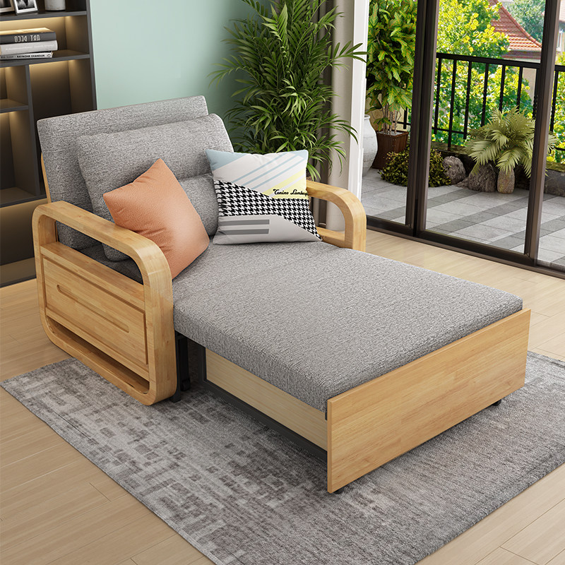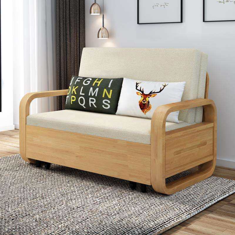 实木沙发床两用出租屋小户型客厅折叠沙发现代简约木质公寓沙发床
