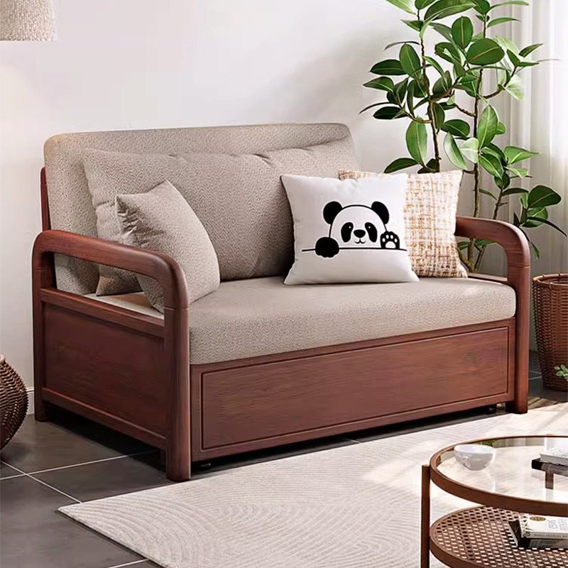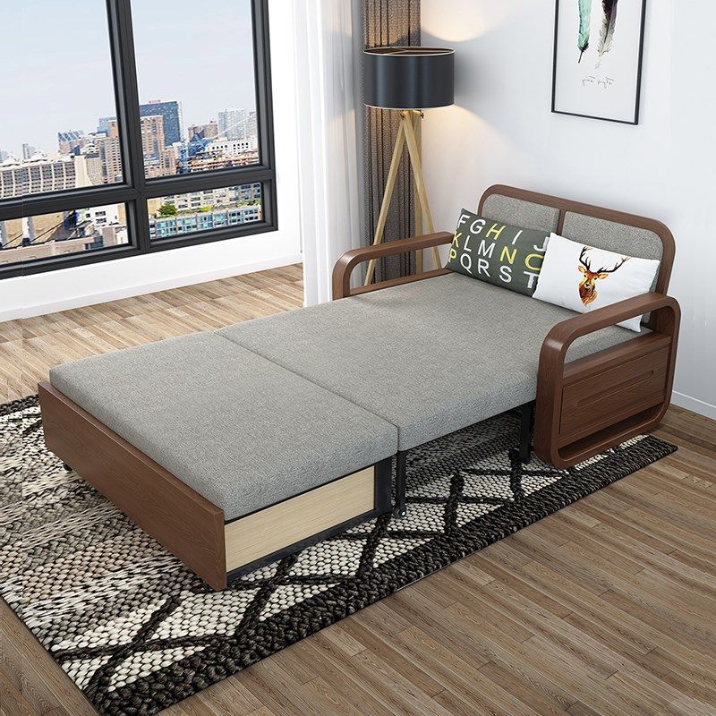 全实木沙发床两用木质胡桃木小户型客厅多功能冬夏两用折叠可变床