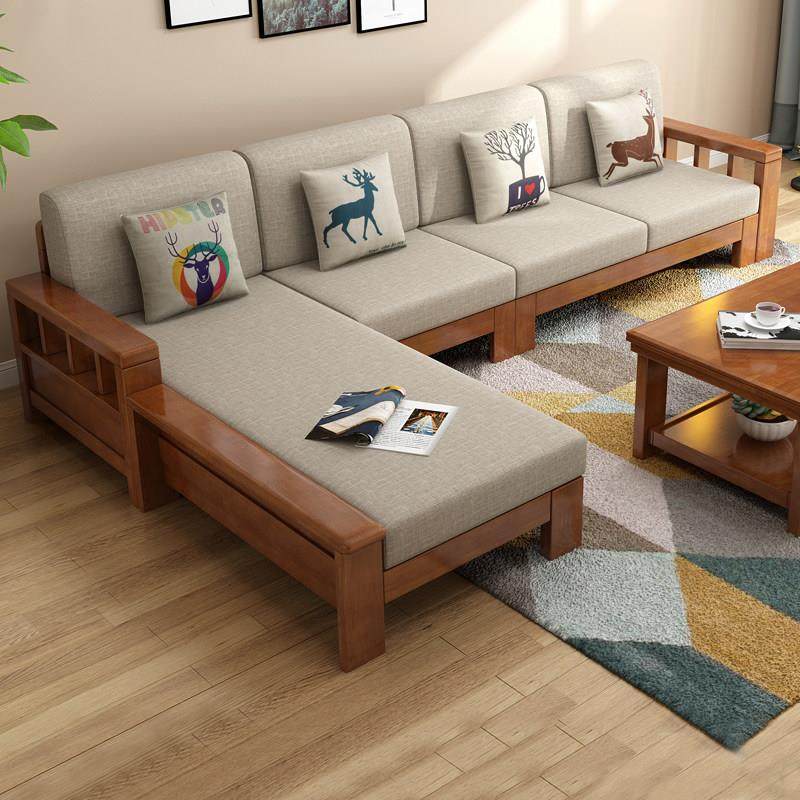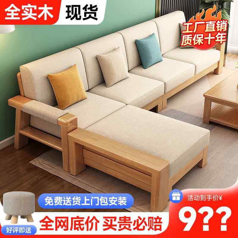 全实木沙发组合现代中式家用小户型客厅沙发床带转角布艺木质沙发
