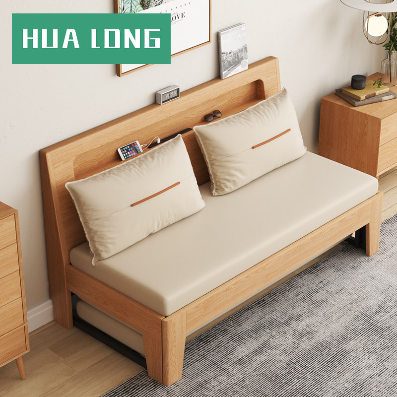沙发床一体两用双人多功能客厅新款实木折叠推拉床木质伸缩榻榻米
