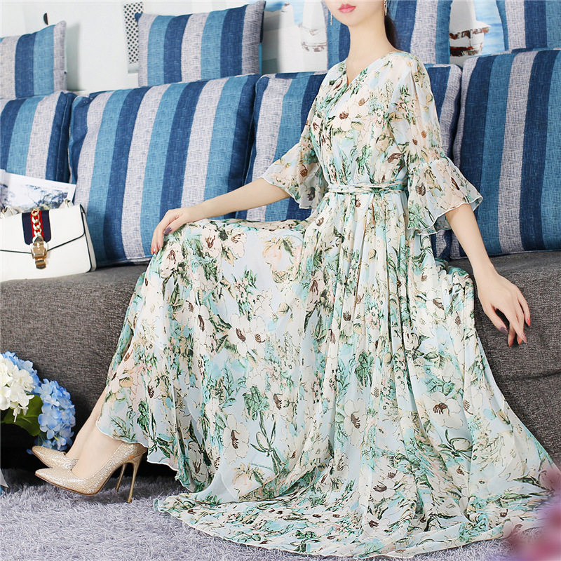 连衣裙夏季2025碎花雪纺长款大摆去海边裙子度假宽松大码长裙仙女