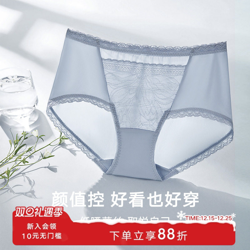 曼妮芬性感蕾丝中低腰三角裤女轻薄内裤纯棉全棉底裆底裤女生短裤