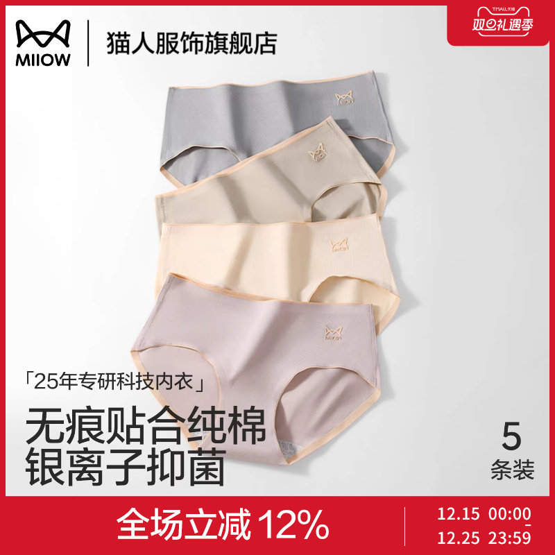 5条装无穿感白裤伴侣空气无痕不侧滑内裤细腻莫代尔petite底裤女