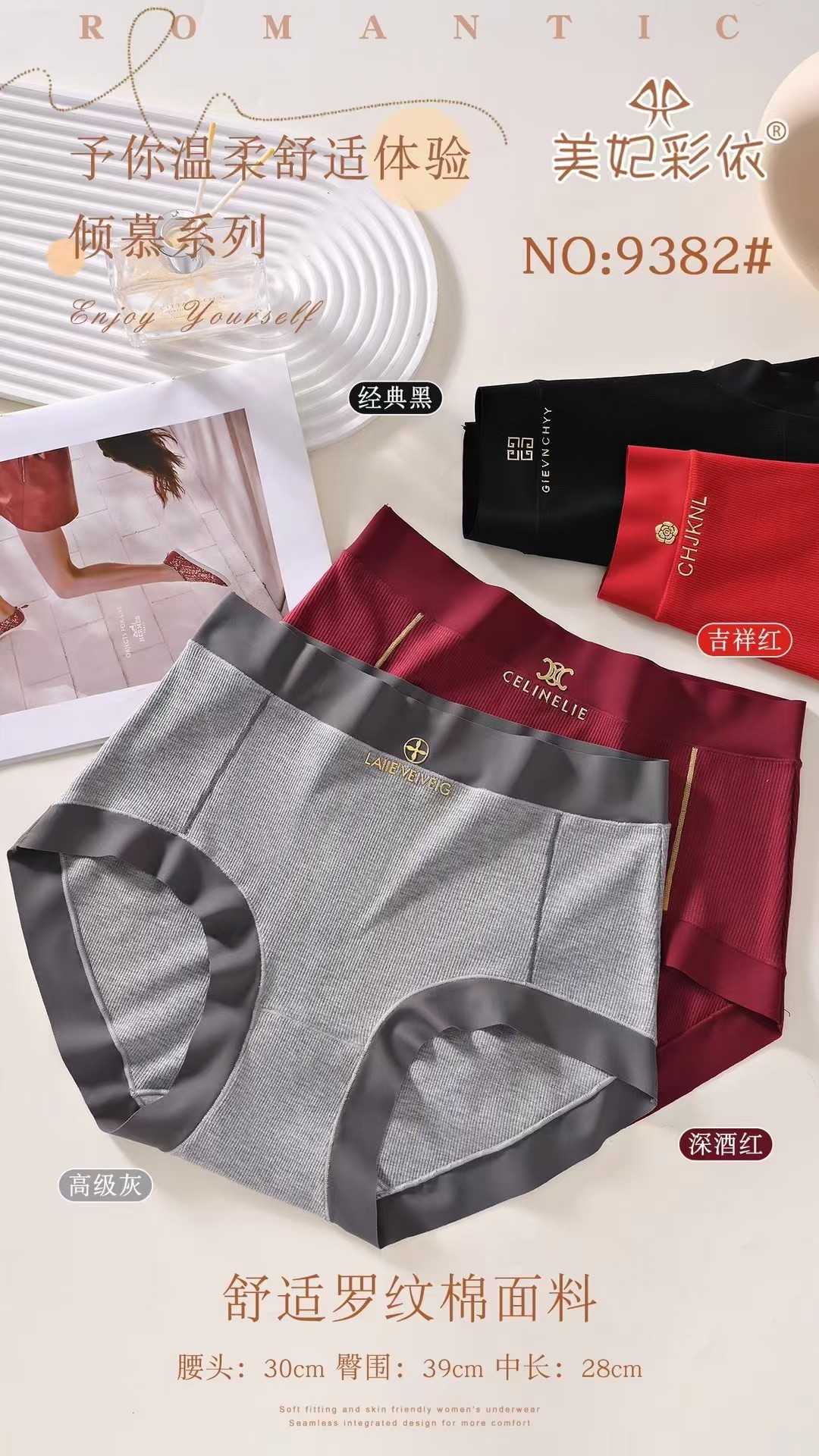 美妃彩衣大码内裤女士中高腰螺纹棉三角裤女生底裤女式胖妹妹短裤