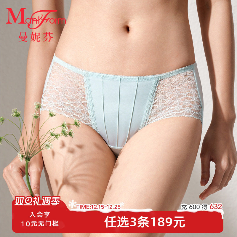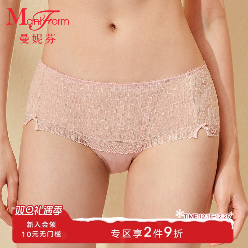 曼妮芬中低腰低角裤女性感蕾丝内裤舒适纯棉底裆底裤女裤20612289