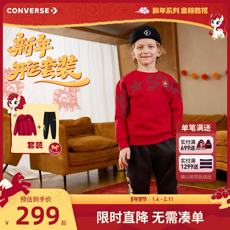 【新年红色加绒套装】匡威儿童卫衣长裤2件套男女童运动装拜年服