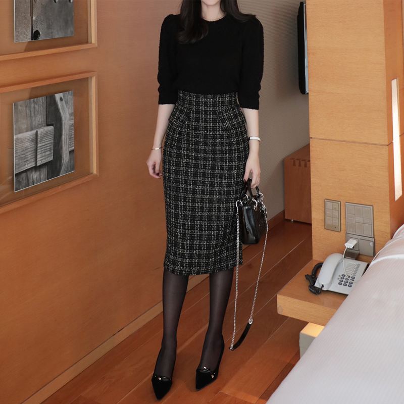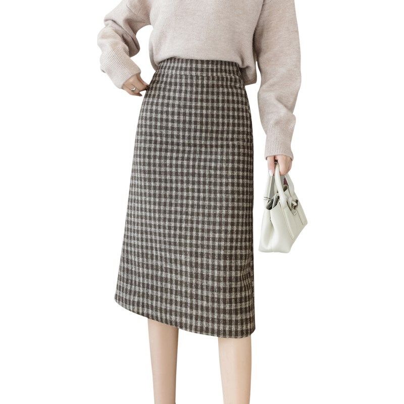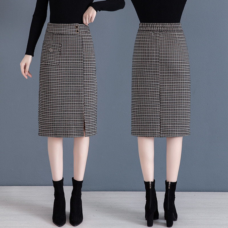 半身裙秋冬毛呢包臀格子[第3名]
