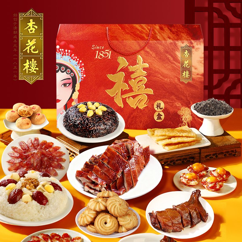 杏花楼老字号禧礼盒八宝饭咸鸡核桃芝麻粉过年年货礼包3400g团购