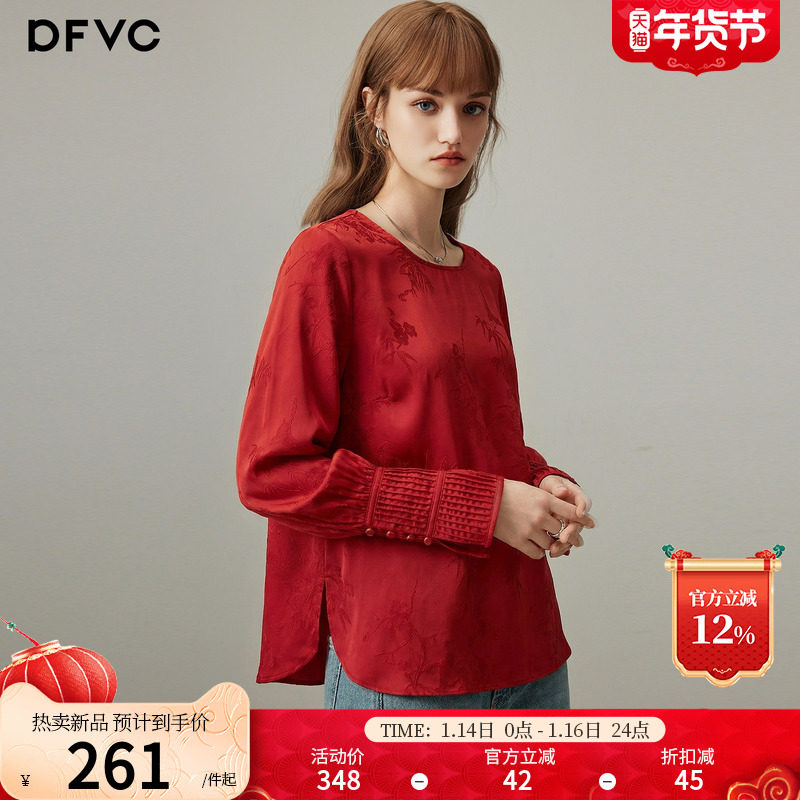 dfvc新年红色新中式国风长袖衬衫女2026年春季新款提花内搭打底衫