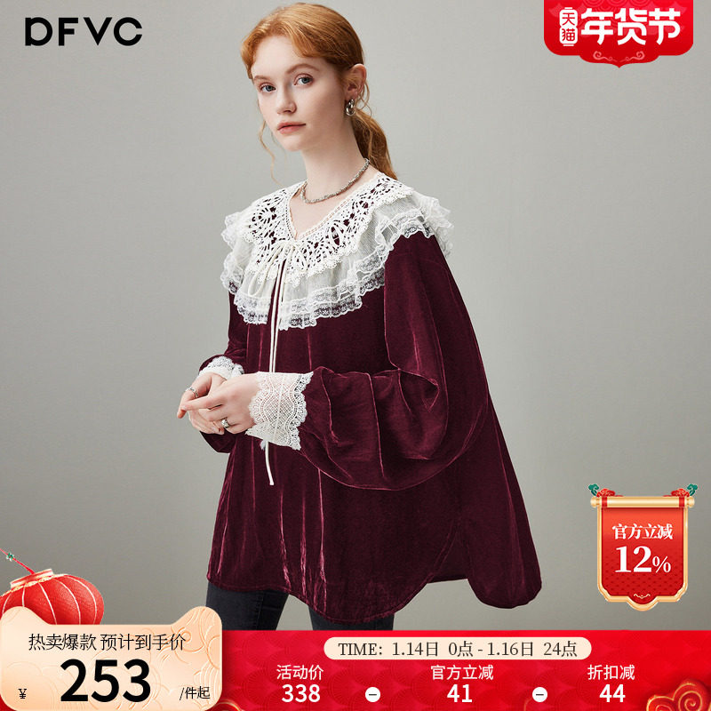 dfvc红色法式蕾丝荷叶领长袖衬衫女2026年春季新款宽松复古风上衣