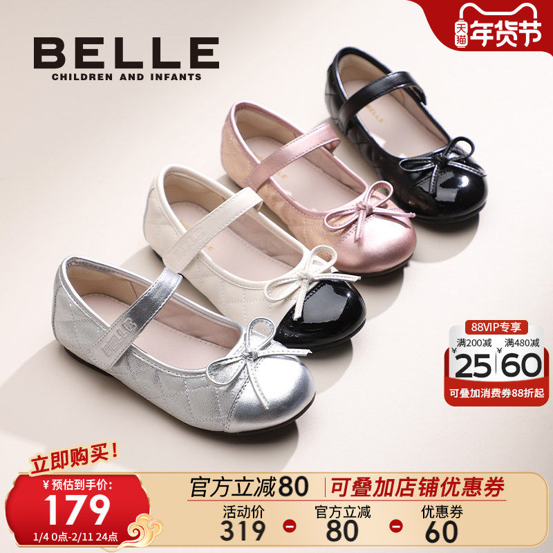 百丽童鞋女童小皮鞋2025秋冬新款软底鞋公主鞋儿童小香风时尚单鞋
