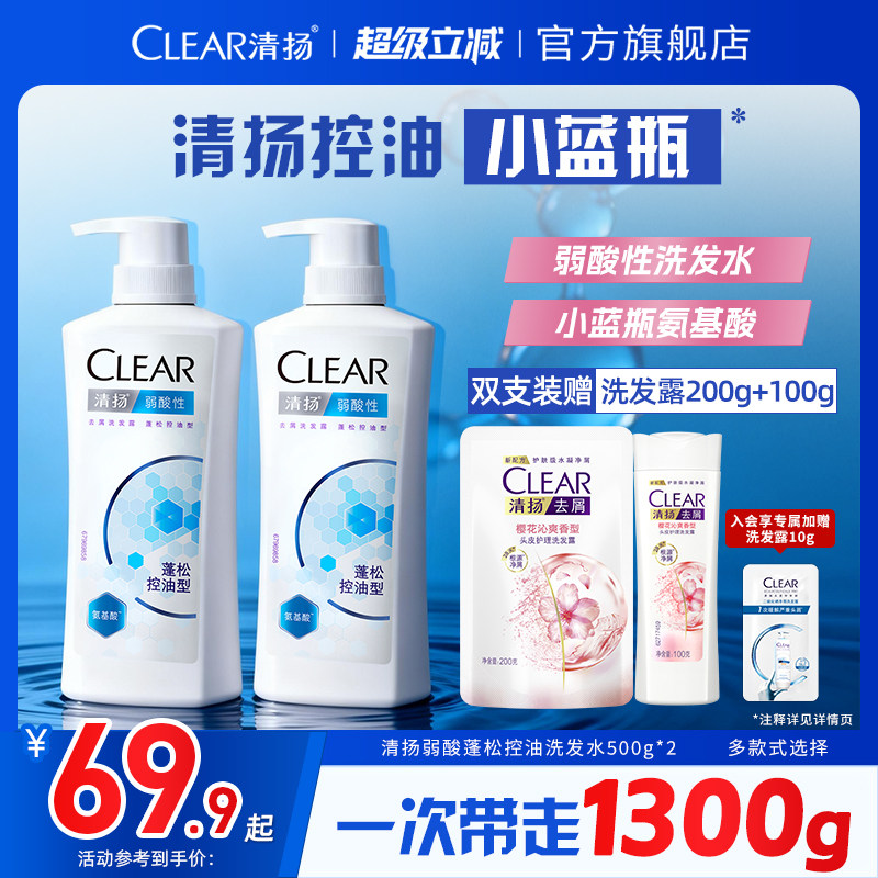 【官方直营】清扬小蓝瓶氨基酸蓬松控油弱酸性洗发水露男女士500g