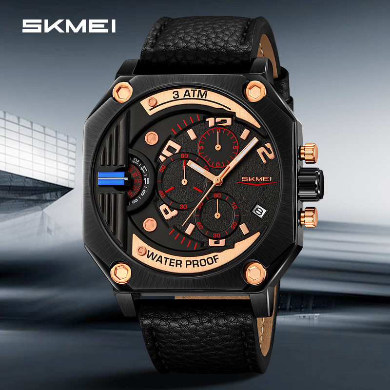 SKMEI时刻美方形大盘独立秒盘两针半手表休闲时尚商务石英表