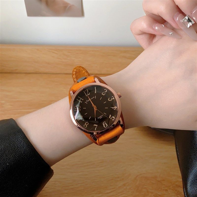 圆形复古手表牛皮文艺百搭石英机芯女士表中性简约大盘潮流腕表女