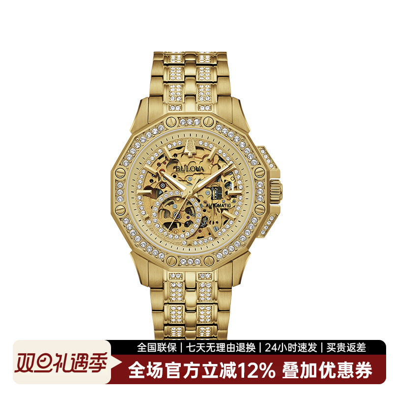 宝路华大盘手表男表潮酷嘻哈土豪街头复古镂空机械表水晶98A292