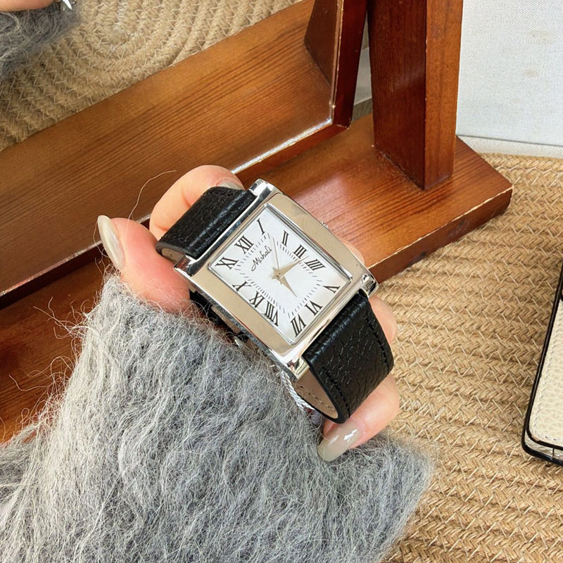 Mishali皮表带颜值罗马方形手表女表抖音直播大盘手表女士时尚