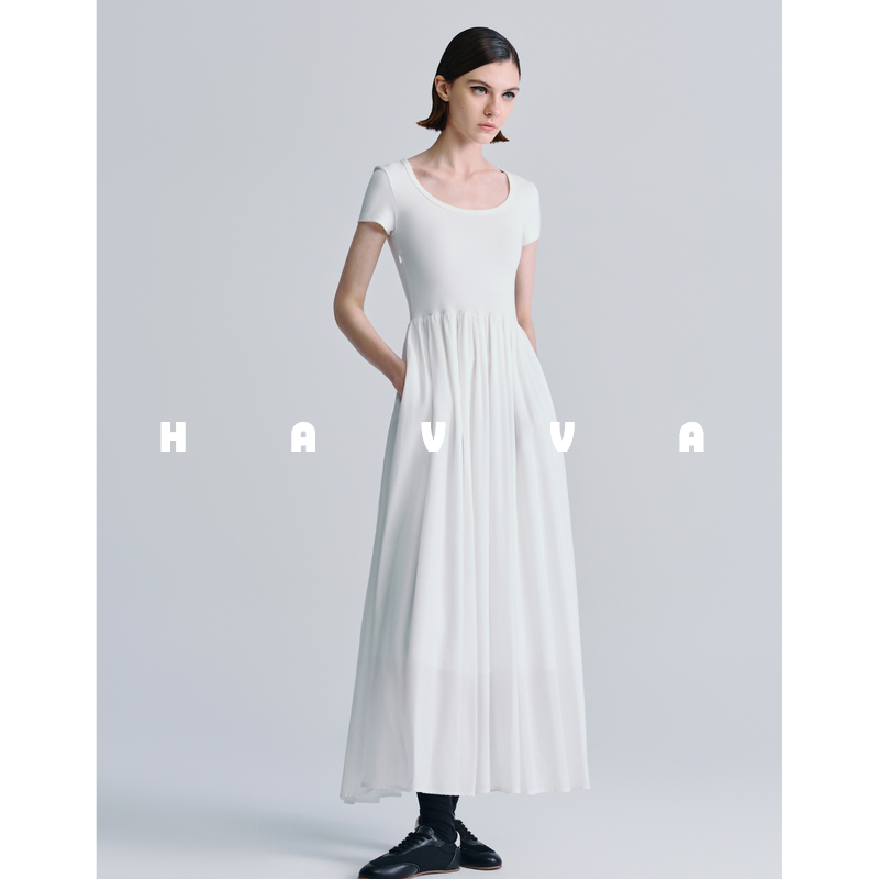 HAVVA设计感小众收腰拼接连衣裙女修身显瘦女士裙子2025夏Q3-2320