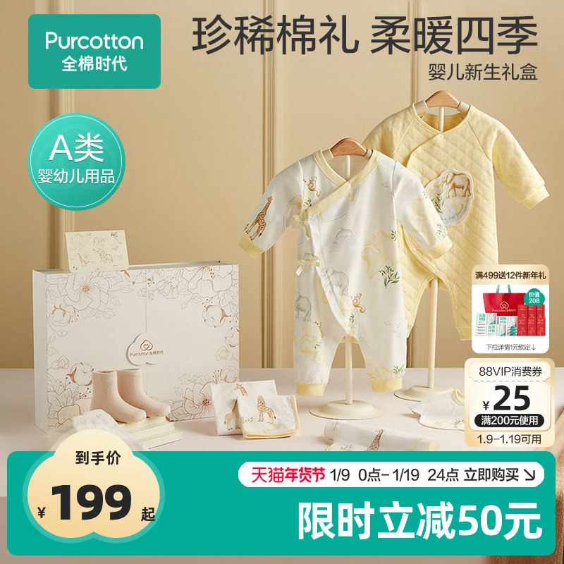 【四季八件套】全棉时代新生儿礼盒婴儿衣服套装春秋宝宝用品满月