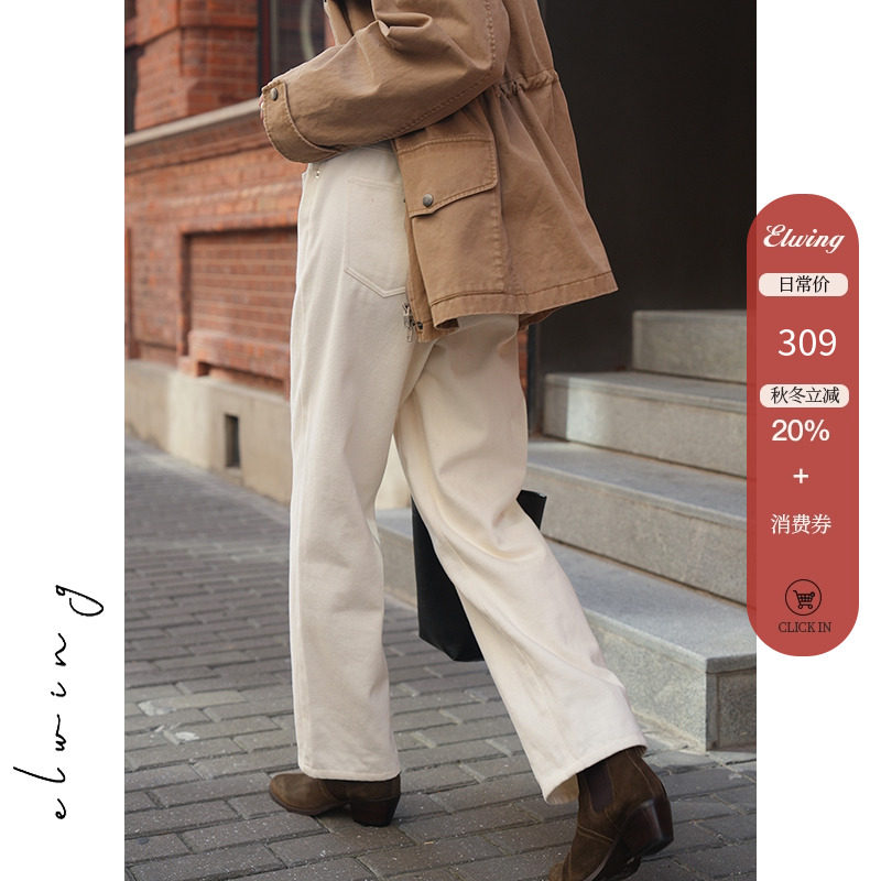 Elwing全棉磨毛宽松小脚牛仔裤女秋冬经典百搭高腰显瘦老爹裤长裤