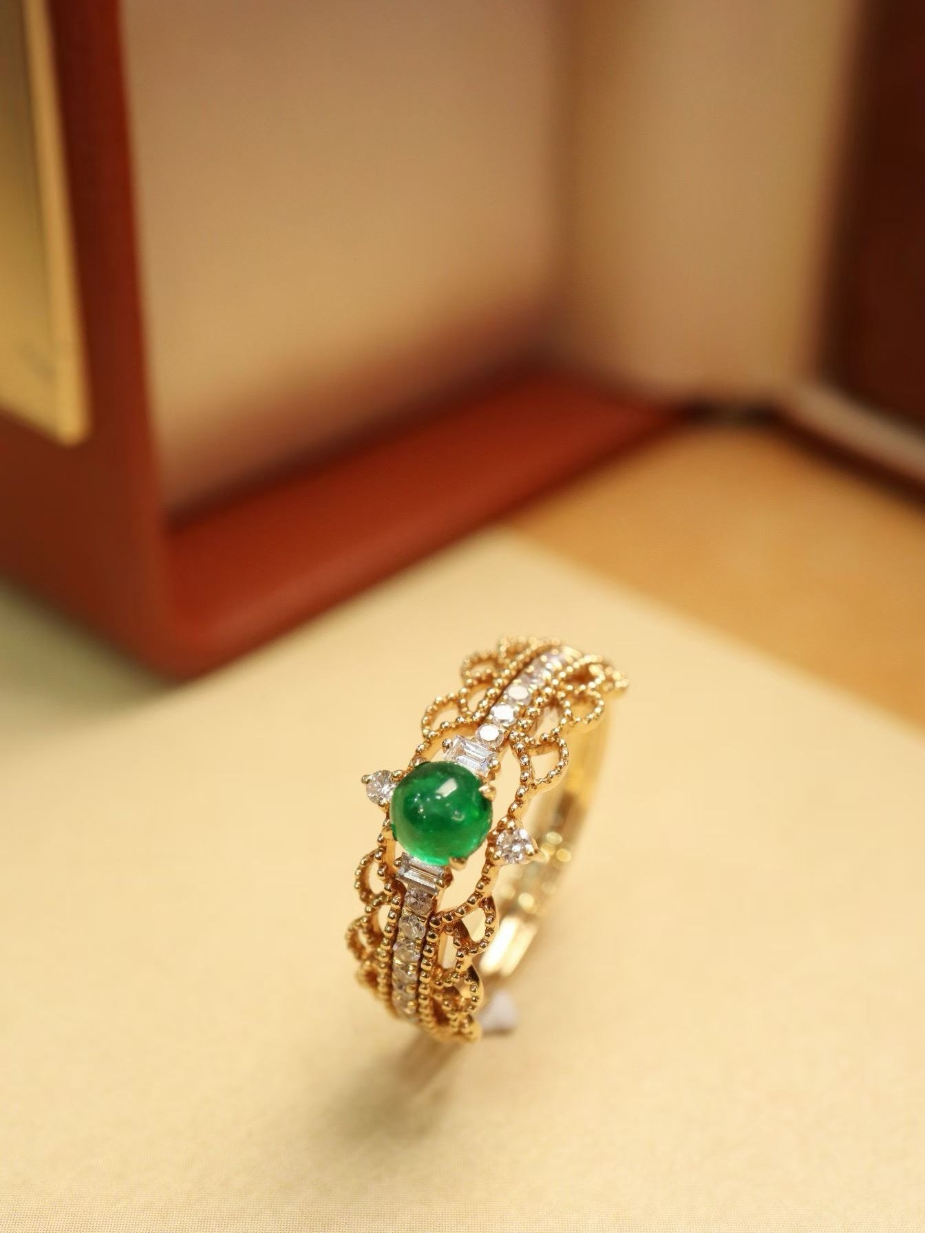 天然祖母绿戒指 48分 皇冠设计 单戴叠戴都好看 18k金钻石镶嵌